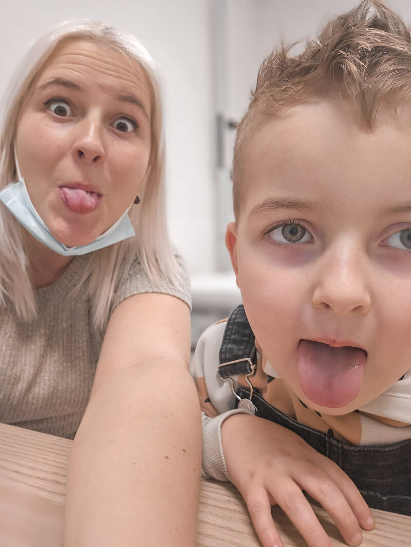 Het opmeten op de onderzoekstafel neemt een goed uur in beslag. Niet bepaald het favoriete onderdeel van de dag voor ons wiebelkontje, maar hij doet dat alsnog flink. Ik kan hem afleiden met eten (ofcourse!), autootjes en als laatste redmiddel zijn tablet met muziek.