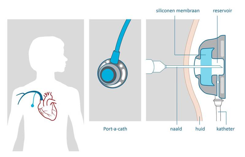 De chirurg legt uit dat ze 2 maten poortcatheters hebben voor kinderen en ze gaan proberen om de grootste te gebruiken, als daar de plek voor is tenminste. Die grootste zou de beste zijn qua kwaliteit én ook gewoon veel gemakkelijker om achteraf telkens aan te prikken. Er zal sowieso 1 sneetje nodig zijn en misschien zelfs 2. Alles hangt af van hoe je grote aders richting je hart lopen.
