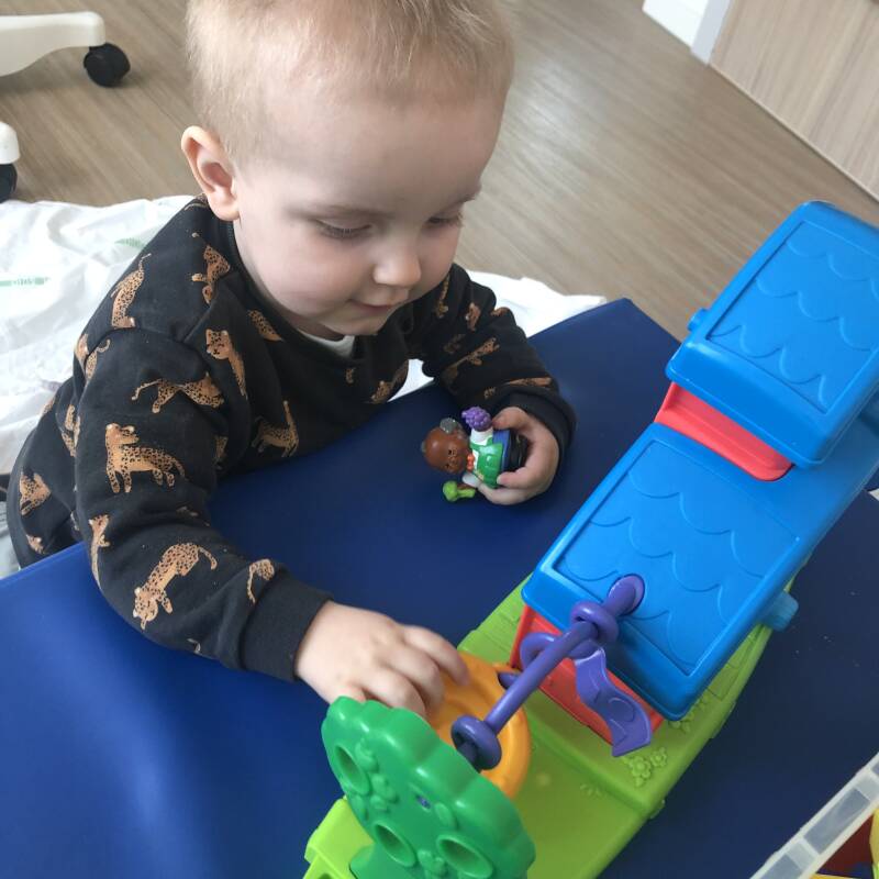 Tijdens onze vorige opname waren er toch wel bepaalde bezorgdheden rond Mace zijn spieren in zijn benen, voeten maar ook in zijn romp. Hij kan op dit moment nog niet zelfstandig zitten en dat zou te wijten zijn aan verkorte spieren. Ondanks al het gestretch en geoefen lijkt het erop dat de spanning in zijn spieren niet betert. In tegendeel. Het gesprek valt mij zwaar op de maag. Zeker wanneer de kine in Leuven het woord "ingrijpen" uitspreekt, krimpt mijn maag bij elkaar. 'Wat bedoelen ze hier mee?'. Onze thuis-kine legt uit dat ze het hebben over spalken óf injecties met Botox. Niet bepaald geruststellend. Ik lig hier van wakker...